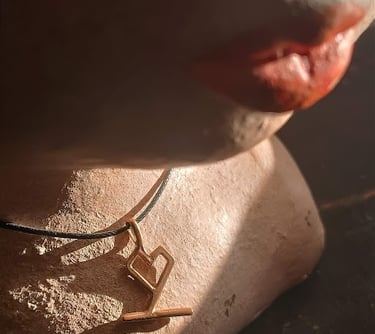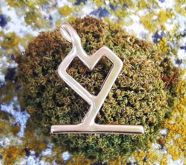 Confezione: Boccetta in vetro e tappo di sughero con simbolo inciso. Parola stampata in digitale su cartoncino riciclato (ogni ciondolo ha una parola poetica abbinata che puoi personalizzare)
