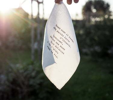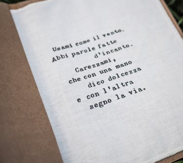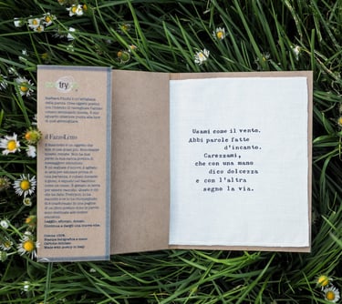 libro con pagina estraibile che si trasforma in un fazzoletto con parole poetiche da dedicare.