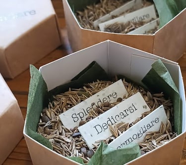 Semi di prato e Parole stampate su carta biodegradabile contenente semi di fiori melliferi