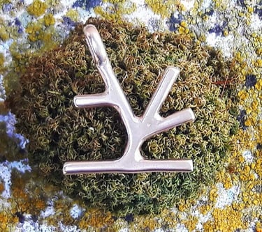 Confezione: Boccetta in vetro e tappo di sughero con simbolo inciso. Parola stampata in digitale su cartoncino riciclato (ogni ciondolo ha una parola poetica abbinata che puoi personalizzare)
