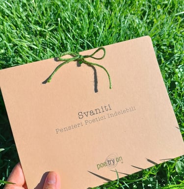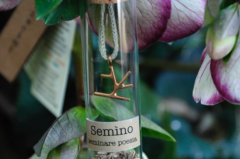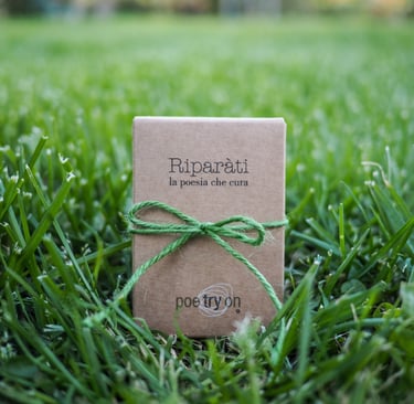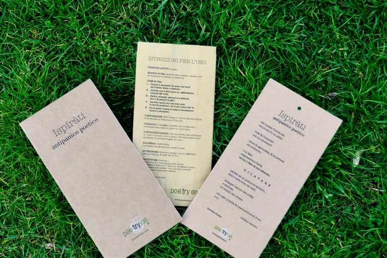 Le creazioni poetiche di Poetryon sono oggetti scelti dal quotidiano, tutti legati a loro modo al corpo. La poesia è qualcosa di vivo che possiede un suo senso materico, qualcosa che possiamo sentire tra le dita, sulla nostra pelle, dentro al nostro respiro. Questi oggetti vengono rimodellati attraverso la parola, assumono un nuovo linguaggio, un punto di vista altro. Ci ricordano, come amuleti preziosi, che bisogna avere occhi attenti per poter riconoscere la poesia e un cuore grande per poterla custodire.