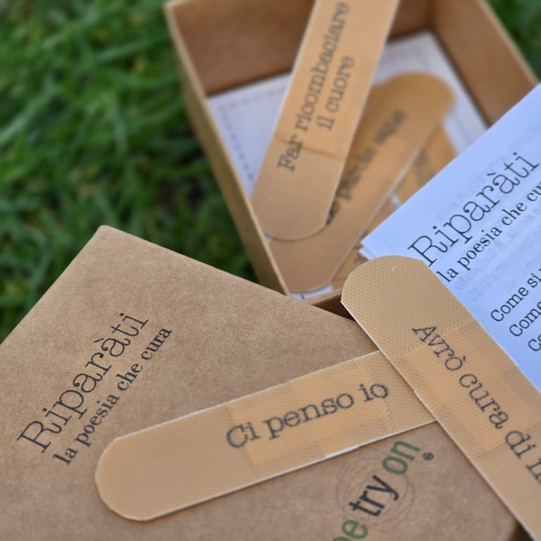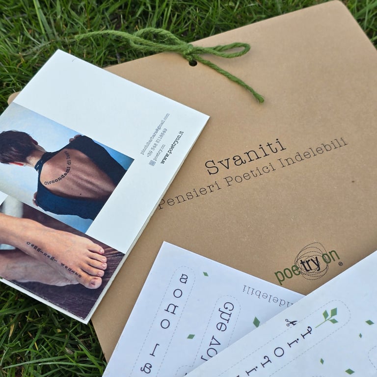 Le creazioni poetiche di Poetryon sono oggetti scelti dal quotidiano, tutti legati a loro modo al corpo. La poesia è qualcosa di vivo che possiede un suo senso materico, qualcosa che possiamo sentire tra le dita, sulla nostra pelle, dentro al nostro respiro. Questi oggetti vengono rimodellati attraverso la parola, assumono un nuovo linguaggio, un punto di vista altro. Ci ricordano, come amuleti preziosi, che bisogna avere occhi attenti per poter riconoscere la poesia e un cuore grande per poterla custodire.